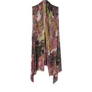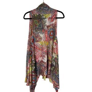 Molly Max Top Women L Pink Open Front Cardigan Sleeveless Floral Tropical Hi Lo