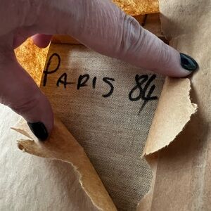 No flaws noted in the painting, but the backing has a few tears….see photos.