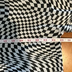 Bold black and white pattern. Eye-catching optical illusion design. Short sleeves. Comfortable fit.