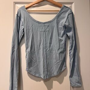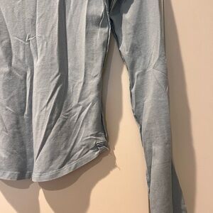 Elevate your wardrobe with this elegant light blue long sleeve top. Perfect for any occasion, it offers both comfort and style.