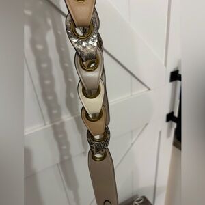 * Gold hardware featured on bag and one strap, gun metal hardware on other strap