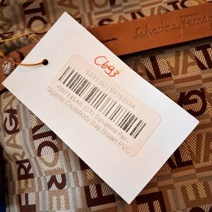 Salvatore Ferragamo Tan and Brown Logo Cross Body