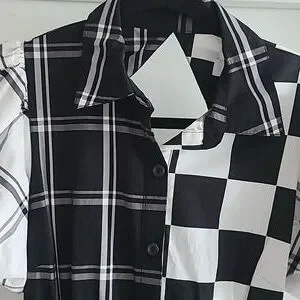 Stylish black and white checkered & plaid dress