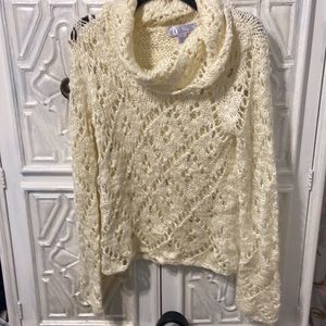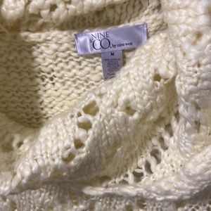 Pictures do not do this justice, winter white crocheted sweater with beaded detailing . Color is a winter white bust measurement 20 pictures do not do this justice very soft.