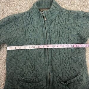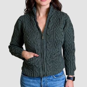 Vintage Inis Crafts 100% Merino Wool Cable Knit Full Zip Sweater - Green - S