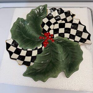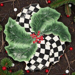 Have a holly jolly holiday! MacKenzie-Childs brings the joy with this holly leaf serving platter. Set the scene for festive entertaining with this bold design ceramic dish, sized just right for sharing appetizers, desserts, or seasonal treats. Its cheerful design adds warmth and whimsy to your table. From MacKenzie-Childs.