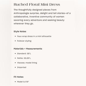 Anthropologie Ruched Floral Mini Dress