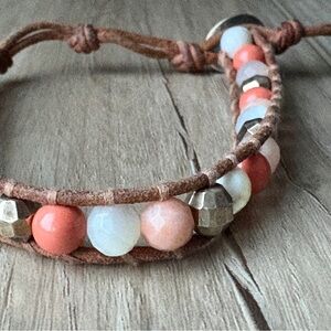 Chan Luu Beaded Leather Wrap Bracelet Pink Boho Artisan Jewelry Designer Women
