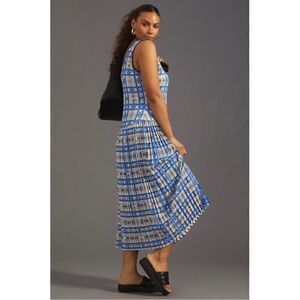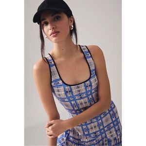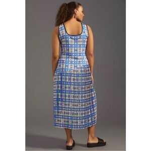 NEW Anthropologie Dhruv Kapoor Blue Plaid Mesh Scoop Neck Midi Dress Plus 2X