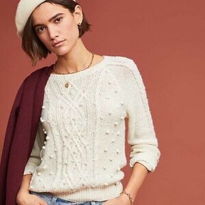 NWT Anthropologie Cupcakes & Cashmere Cream Pommed Cable-Knit Sweater