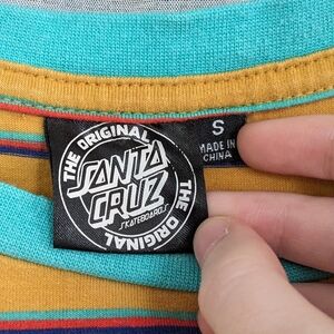 Santa Cruz Skateboard T Shirt Men's S Yellow Teal Striped Sunflower California Logo Retro Skater