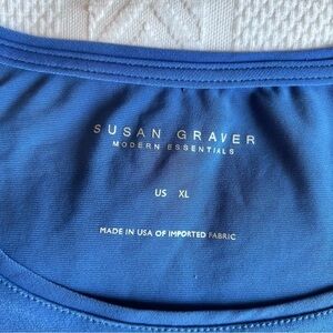 Susan Graver QVC Blue Scoop Neck Elbow Length Sleeve Blouse Size XL