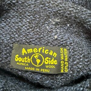 Very good pre-owned condition. No holes or stains noted. Light natural fuzz typical of alpaca fiber.