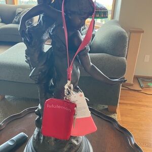 Lululemon pouch set in pink and red. Includes two pouches with a strap.