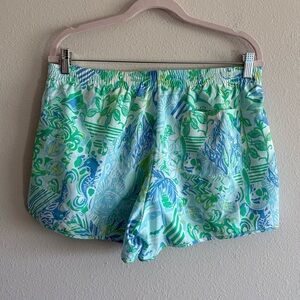 Lilly Pulitzer Luxletic Ocean Train Shorts.