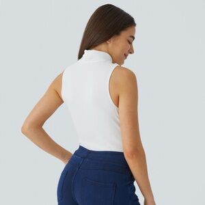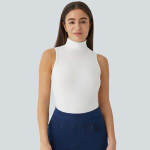Halara Sleeveless White Turtleneck Top Ribbed Knit High Collar Casual T-Shirt S
