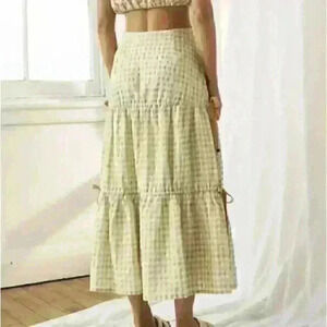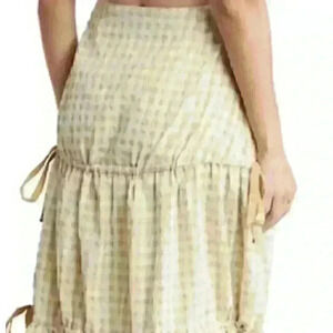 Mon Renn White Tiered Skirt Women's Size 8 Small NWT Lucille Marigold Plaid $179. Condition is New with tags. Shipped with USPS Ground Advantage.
