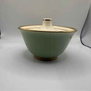 Ceramic with Celadon green and gold guildimg trim.
