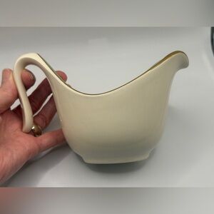 Tiny chip in the gold and small mar on the creamer.