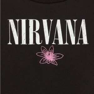 Cool black tank top with NIRVANA logo. Pink flower accent adds style. Perfect for young fans.