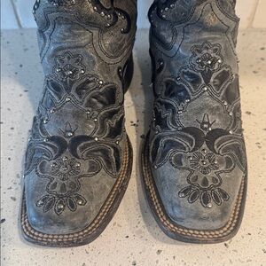 Corral Women's Gray with Black Embroidered Studs Western Boots Cowgirl Size 6M