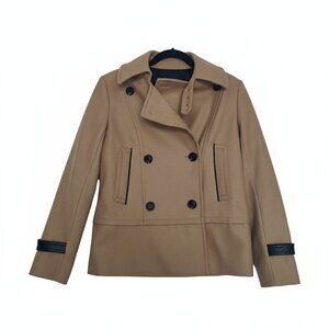 *Club Monaco Franci Tan Wool Pea Coat with Black Trim - Small