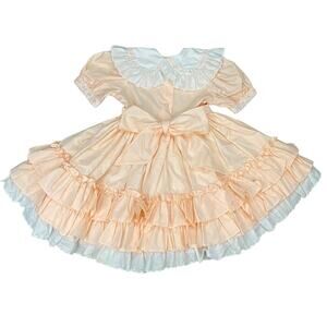 VTG Lilo California Full Circle Dress Girls Size 5 Peach/Pink Pageant Ruffled Tiers