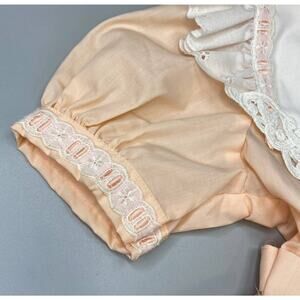 This sweet little dress is adorable in EXCELLENT MINT condition, like new. The material is still crisp, not sure if it has ever been worn or washed. Any dark areas in photos is just shadows.