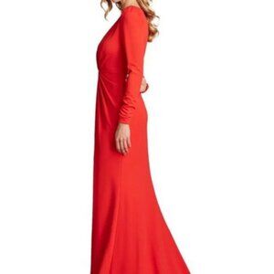 Tadashi Shoji Red Rose Twist Front Long Sleeve XL Mermaid Gown