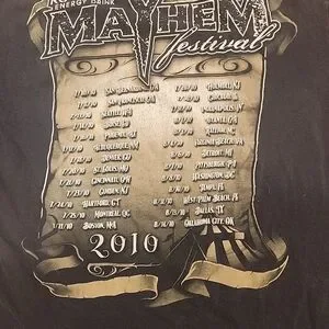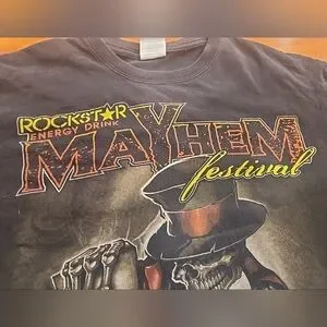 ROCKSTAR ENERGY DRINK Shirt Men's Medium Black Mayhem Festival 2010 Goth Metal. Shirt is in generally good condition. Has overall fading typical of a black t-shirt. Design is still in very good condition.