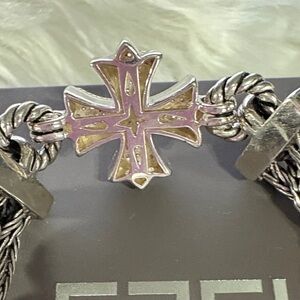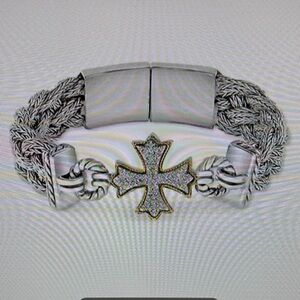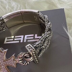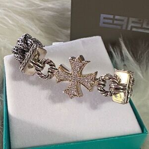 Elegant silver bracelet by Effy. Features Diamond cross design. Perfect for any occasion. Diamond cross woven bracelet 1/3 ct tw in Sterling silver with 18k gold. Excellent preowned condition. I have used it once. Effy box included. Before buying please ask all the necessary questions. NO RETURN
