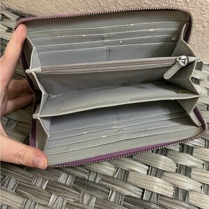 Coach Purple Leather Zip Around Wallet Wristlet