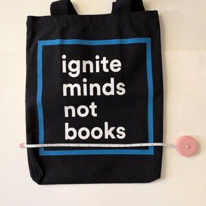Make a statement with a limited edition tote bag created by the Toronto Public Library in honour of Freedom to Read week. 'tpl:' on one side; 'ignite minds not books' on the other. Show your support for reading and the library with this stylish tote.