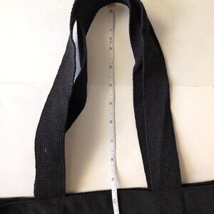 Approx. 13in wide by 16 in. long. Shoulder drop is about 9.5in. I've pictured it with a 2L bottle of soda (not included) for size reference. The interior isn't huge, but you can fit a comfy amount of books or whatever in here. Made with a nice heavy fabric. The 'T' on the TPL is a bit flawed (see photo)
