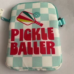 New Padded Pickle Baller Bag Green and White Checks Adjustable Strap Pickleball