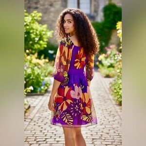 Embrace elegance with this stunning floral purple dress. Perfect for any occasion.
