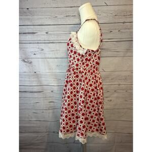 Sweet Society Coquette Strawberry Gingham Dress with Lace Trim Bows Size L