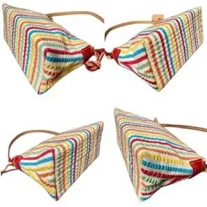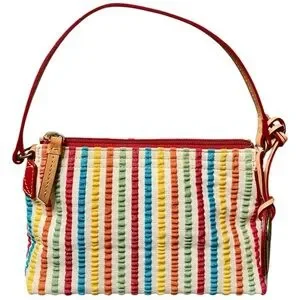 Dooney & Bourke Seersucker Multicolor Stripe Shoulder Bag w/ Bold Pink Interior
