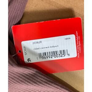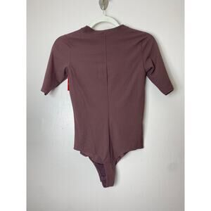 SPANX BODYSUIT S RIBBED CREWNECK SUIT YOURSELF SHORT SLEEVE SMOOTHER RAISIN CHIC ELEVATED BASICS OFFICE CASUAL PREPPY