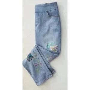 NWOT COLDWATER CREEK Womens' Petals & Patches Embroidered Pull On Jeans Sz 16P