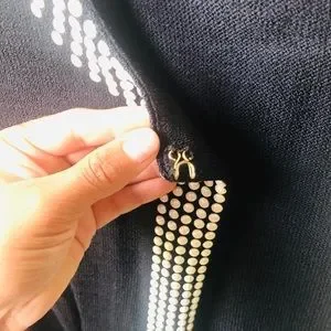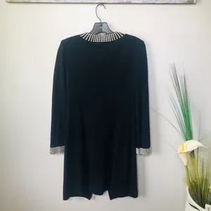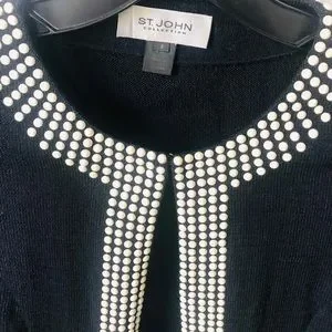 Gorgeous Black Santana Knit topper with pearl decoration over the neckline, cuffs and fake pockets. Hook and eye closure at neck line. Worn twice, perfect condition. Dry clean only.