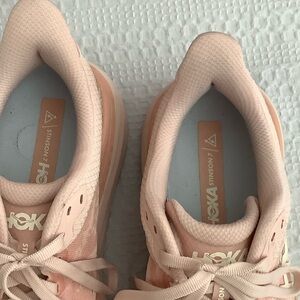 Sleek Hoka shoes in a soft peach tone. Ideal for running and everyday comfort.In excellent condition wear one time.Pictures are from the actual item and are considered part of the condition statement.