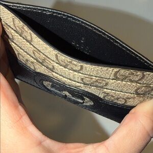 Stylish Gucci card holder with iconic logo. Perfect for organizing essentials. No Dustbag or box