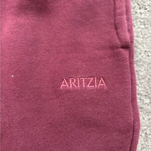 Not sold anymore. Pant tie has a minor tear as shown. Doesn’t affect the sweatpants at all. Cozy burgundy hoodie from Aritzia. Boyfriend fit for relaxed style.