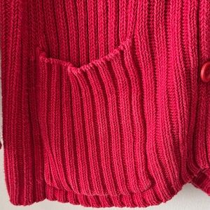 Stay cozy and stylish with this vibrant red V-neck sweater. Perfect for layering, it features a classic button-up design and comfortable fit. Very heavy weight