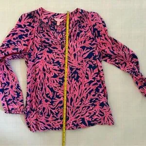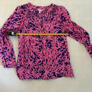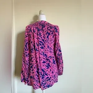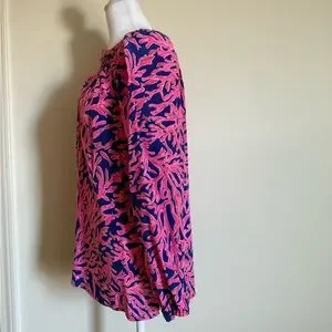 Lilly Pulitzer Vibrant Coral Print Elsa Blouse size medium 100% silk