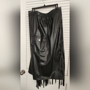 Ashley Stewart Faux leather fringe skirt - Black NWT
