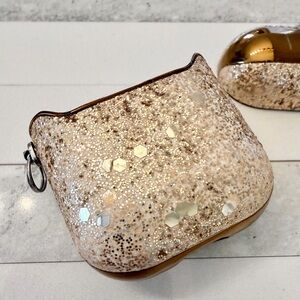 Sparkling gold AirPods case with glitter design. Perfect for adding a touch of glam.