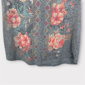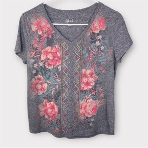 Style & Co. Short Sleeve T-Shirt Top Heather Grey with Floral Design Size Medium