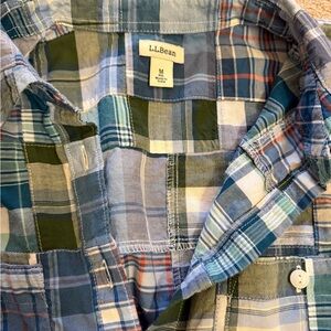 LL Bean Women’s Blue and Green Madras Plaid Patchwork Shirt